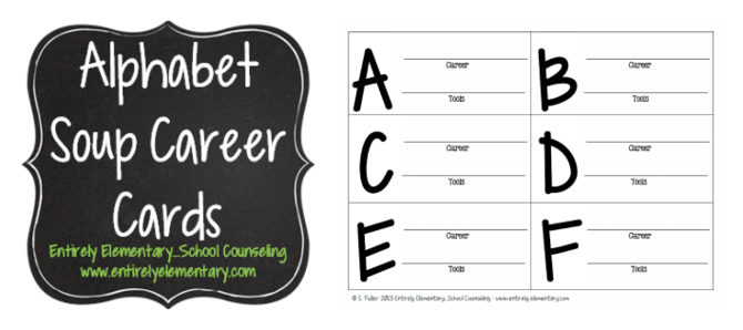These are the Alphabet Soup Career Card printables that go along with Entirely Elementary...School Counseling's Career Awareness Lesson #1! Each 5 card sheet is 8.5" x 11". There is one alphabet card for each letter of the alphabet and 4 additional blank cards. Visit www.entirelyelementary.com for the lesson!